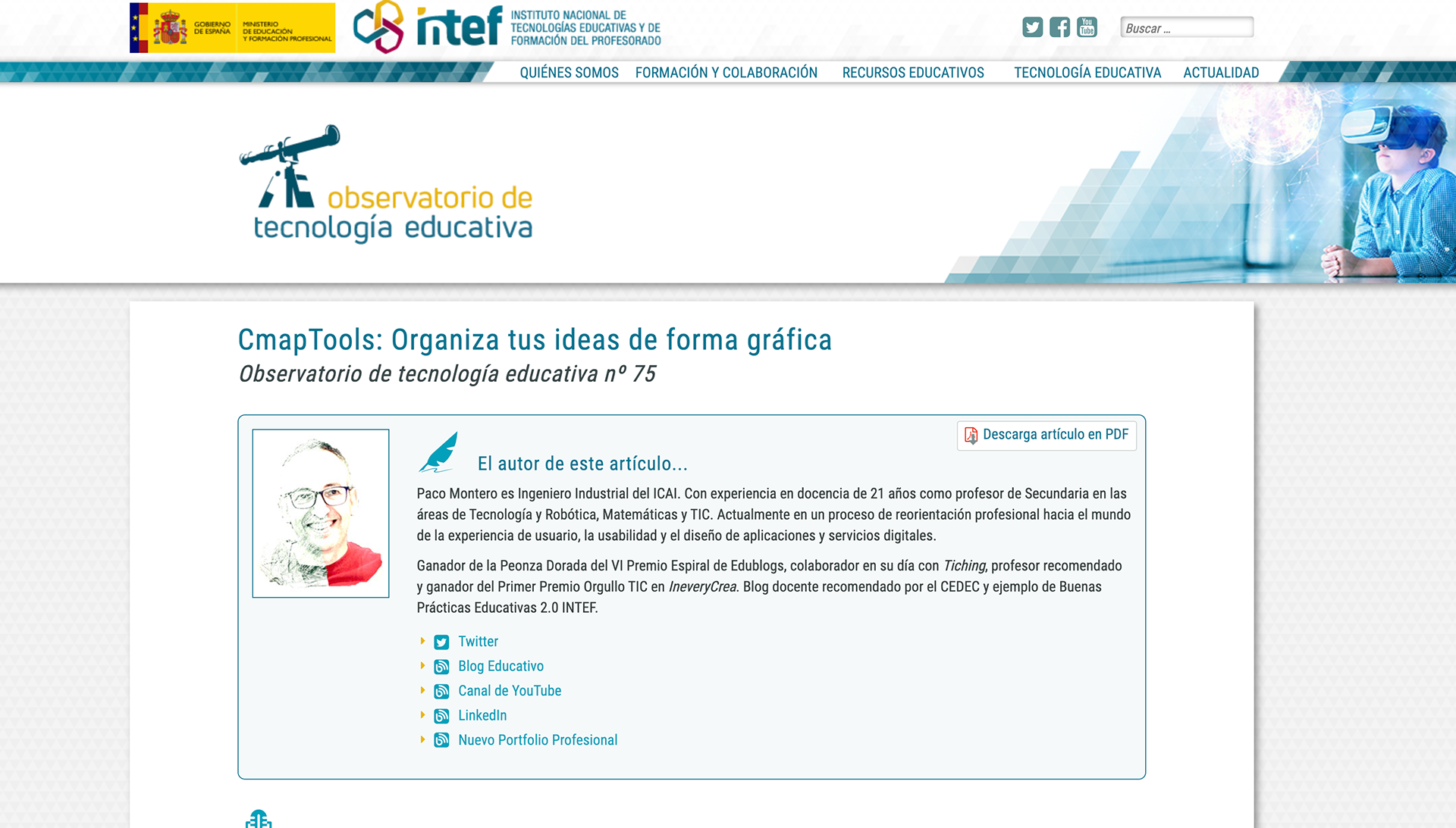 Vinculado a mi actividad profesional anterior, durante unos años compartí mi acción docente en el aula con colaboraciones externas en diferentes entidades educativas, como la Fundación Telefónica, el Blog Educativo Tiching, la Revista Educadores o el Centro Nacional de Desarrollo Curricular